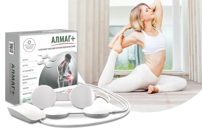 Алмаг — современный аппарат для лечения заболеваний путем физиотерапевтического воздействия. Устройство использует магнитное поле для уменьшения болевых ощущений, устранения отека и облегчения воспалительных процессов в любых отделах организма. Эффективность аппарата доказана по результатам исследований. Алмаг рекомендуют врачи для терапии патологий сердечно-сосудистой, опорно-двигательной, дыхательной и других систем. Лечение с помощью магнитных волн хорошо сочетается с другими терапевтическими мероприятиями, вроде применения медикаментов и оперативного вмешательства. Воспользоваться устройством можно в нашем массажном кабинете. АЛМАГ+ снимает воспаления, активизирует кровоснабжение, нормализует обмен веществ: Снимает обострения. Устраняет болевой синдром. Убирает скованность. Улучшает подвижность. Способствует восстановлению. Незаменим в составе комплекса, помогает и как самостоятельное средство. Улучшает усвоение лекарств, позволяет экономить. Снимает спазм и воспаление нервных волокон, улучшает проводимость нервных импульсов к спинному мозгу при невралгии. При межпозвонковой грыже устраняет отечность тканей и воспалительный процесс, восстанавливает естественную подвижность и полноценное кровоснабжение пораженного участка. АЛМАГ+ обеспечит усиленное лечение опорно-двигательных заболеваний с индивидуальным подходом. Аппарат имеет обезболивающий режим для снятия острой боли в дебюте или при хронических заболеваниях опорно-двигательного аппарата и травмах (растяжения, переломы, вывихи и т.д.). Основным режимом способен лечить болезнь основательно, воздействуя на причину боли. Уникальный мягкий и бережный детский режим разработан специально для малышей от 1 месяца жизни. Показания к применению АЛМАГ + артропатии (артриты, артрозы) неинфекционной этиологии и остеохондропатии; пяточная шпора; остеохондроз позвоночника, в том числе осложненный грыжей межпозвоночного диска; сколиоз I-II степени; остеопороз (лечение и профилактика); гипертоническая болезнь I, II стадии.