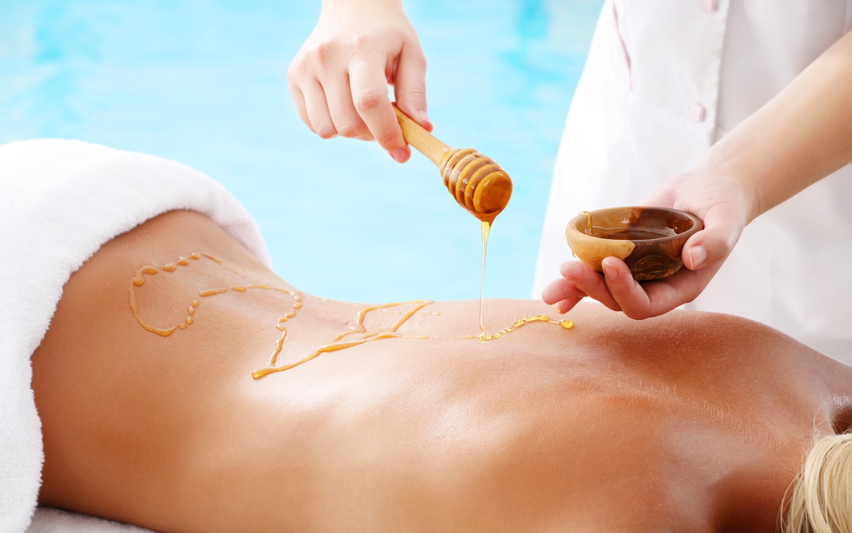 Медовый массаж — эффективное средство борьбы с целлюлитом. Свойства меда и техника выполнения такого массажа помогают расщепить подкожную жировую клетчатку, вывести из организма лишнюю жидкость, очистить поры и сделать кожу тела бархатистой. Действие медового массажа на кожу Во время массажа мед впитывается в кожу и помогает вывести из организма лишнюю жидкость и токсины эффективнее, чем массажные смеси, поэтому уменьшение объемов тела заметно после первой процедуры. Медовый массаж активизирует кровообращение и обменные процессы, благодаря чему рельеф становится более ровным, а кожа — эластичной и мягкой. Кроме того, во время массажа удаляются ороговевшие клетки эпидермиса и улучшается состояние кожи. Медовый массаж тела занимает 40-60 минут. Улучшение качества кожи заметно после первой процедуры, а для достижения более стойкого результата рекомендуется пройти курс из 6-10 сеансов с интервалом в 2-3 дня. Медовый массаж можно сочетать с вакуумным или антицеллюлитным массажем, которые корректируют фигуру. Противопоказания Медовый массаж, как и любая косметологическая процедура, имеет противопоказания, к которым относятся: тромбоз; индивидуальная непереносимость меда; инфекционные заболевания; астма; нарушение функций щитовидной железы; капилляры, расположенные близко к поверхности кожи; нарушение свертываемости крови.